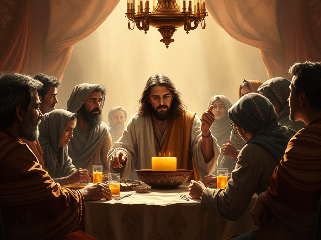 - Jesús enseña al anfitrión: La humildad en la hospitalidad (14:12-14).
